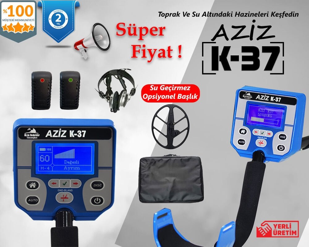 For sale Aziz K-37 Deep search detector model is the gold discrimination deep treasure search device with the most price and features. For sale Aziz K-37 Gold detector offers the guarantee of finding gold coins and items hidden in treasure chests and treasure marks from 30 centimeters to 1.5 meters deep.