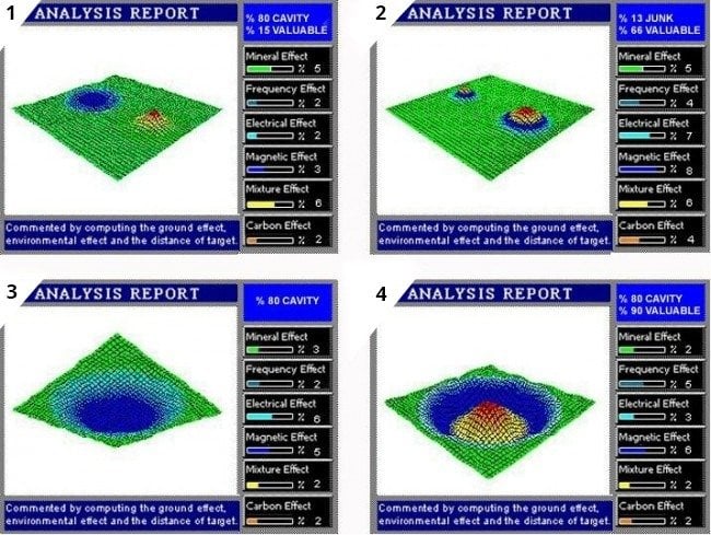 Non-motion, metal and cavity detection, image treasure detector mode In this mode, with the T44 standard search coil (36 x 44 cm) used without motion, you can easily detect treasures that have not been found in areas previously scanned with other detectors. In addition, with the T100 optional large search coil (60 x 100 cm), designed for users who want more depth, you can find the opportunity to detect larger targets at incredible depths. This mode has practical interfaces specially designed for all users, amateur or professional, to use easily. Thanks to these interfaces, you can see both the 3D graphic of the target you detected and the type and depth of the metal on the screen.