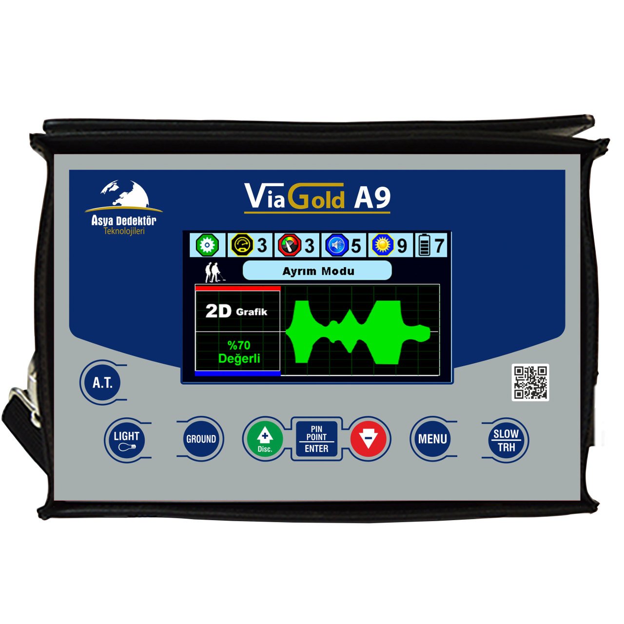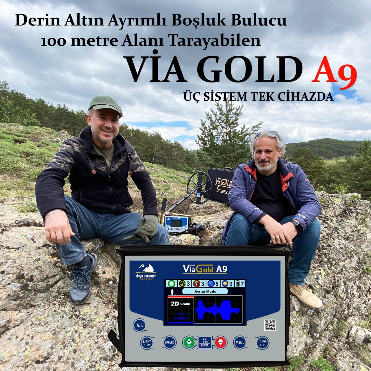 Via GOLD A9 altın arama dedektörü, 60x60 7 khz arama başlığı ile yer altındaki oda mezarlarını, tünel girişlerini, kaya içindeki büyük külçe altın ve hazineleri, define işareti yapılmış Ermeni, Rum hazine ve definelerini, Roma, Bizans, Greek altınlarını, gümüş, bronz, tunç, metal obje ve heykelleri 20 santim ile 3 metre derinden bulabilmektedir. Via Gold A9 alan tarama ve altın dedektörü, altınları, değerli objeleri ve hazineleri 2D canlı grafik tarama ve sayısal değer ekranındaki özel yazılım ve tasarımı sayesinde %60-70 arası garantili net ayrım yapabilmektedir.