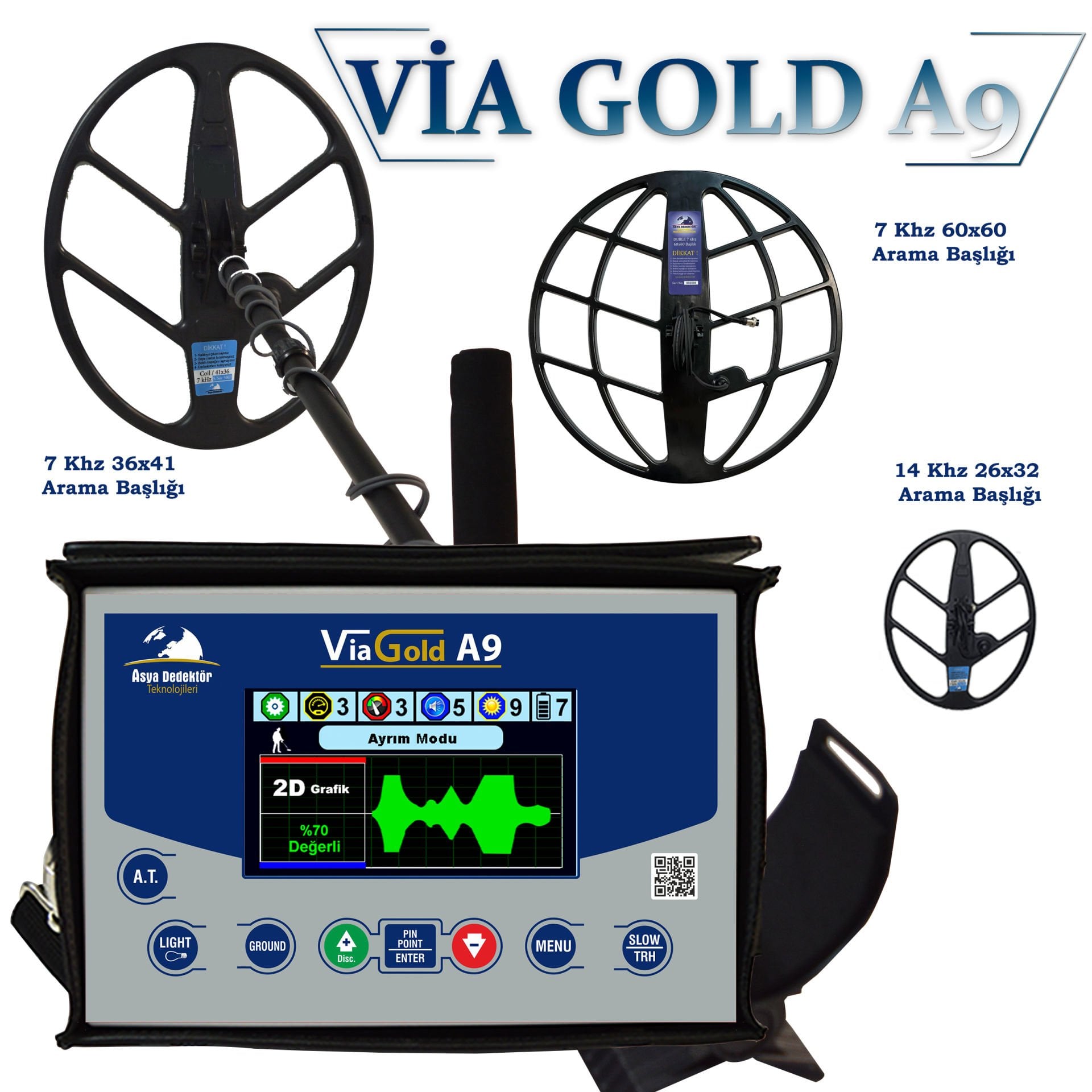 Alan tarama özellikli, altın ayırımlı define dedektörü Via Gold A9, Altın Dedektörü Via Gold A9, derin define ve hazine 2D canlı grafik tarama Via GOLD A9 dedektörü www.azizdedektor.com sitemizden Via Gold A9 modeli ile istediğiniz markayı 6-9 taksitle güvenli bir şekilde satın alabilirsiniz. Via Gold A9 altın dedektörü nakit indirimli fiyata satın alabilir, isterseniz PTT ödemeli kapınıza kadar gönderelim Via Gold cihazı kontrollerini yaptıktan sonra ödemesini yaparak satın alabilirsiniz.
